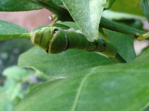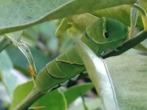 大きく、緑色がきれいなアオムシが2匹。確かにこんなのが大量に発生したら植物は元気がなくなることでしょう。もう少し様子を見ることに。