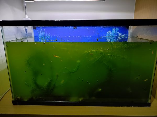 ここの場所は外敵も来ないためメダカにとっては安心して暮らせるお城です。グリーンwaterのため全景は見えませんが時々見えるメダカの姿に見入ってしまいます。