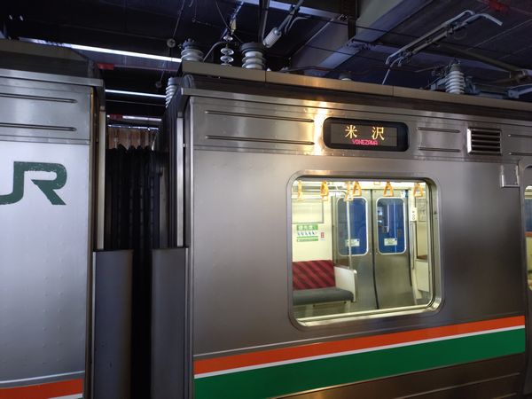 運よく30分ほどして米沢行の電車が来たので乗り込みました。学校帰りの高校生などで思ったより乗客がいます。何年ぶりでしょう。思いがけず奥羽本線に乗る機会をもらったということでしょうか。