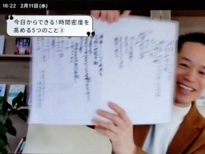 村松さんご自身がやっていることは今日やることを筆で書き込みし、できたものを消していくと。あれだけのことをやっている人でも凡事を徹底していることに感心するばかりです。