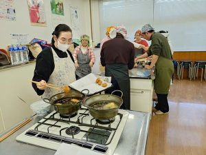 華都子先生が揚げてくれたホカホカのカキフライをつまみ食い。これが最高においしい。生命が喜ぶ学びと食の時間でした。