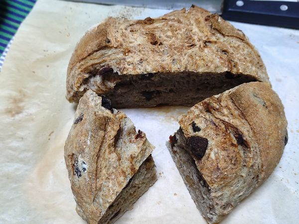 友人とラーメンを食べて帰宅したところでしたが一切れ食べてみると、ちょっといける。全粒粉に干し柿とくるみを入れて焼いたらしい。チーズとの相性もいい。