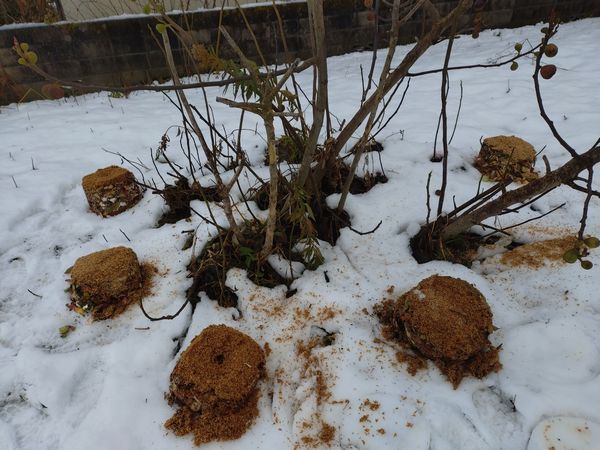 昨日の日曜日、EMコンポストを実家の畑のイチジクの周りに。雪が地面を覆っているため地中に埋めるのは断念し木の周りに散布。