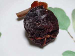 AIで調べてみると柿自身が持つ酵素の働きで種の表面がもろくなり、乾燥・熟成の過程で果肉側に入っていくとのこと。なるほど。これはこれで逸品ではないかと。